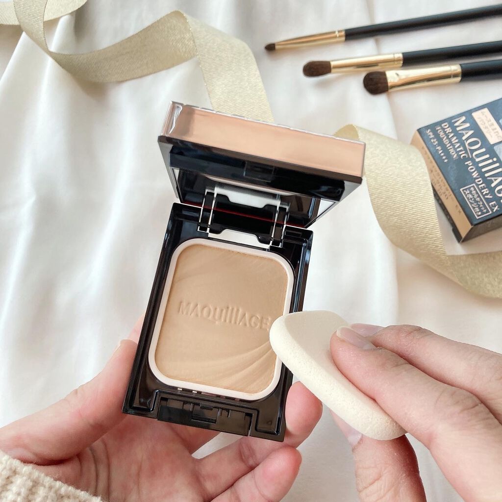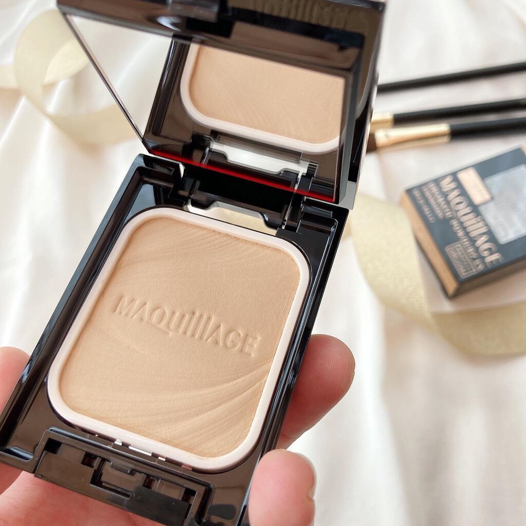 ふんわりとした仕上がりながら自然なツヤ感を演出するパウダーファンデ◎ 資生堂独自の「ムースプレス製法」により、美容液水とパウダーをムース状にして固めた軽やかなテクスチャーが特徴です。 肌に溶け込むようななめらかなフィット感で、毛穴や色ムラをふんわりとカバーしてくれる感じ。