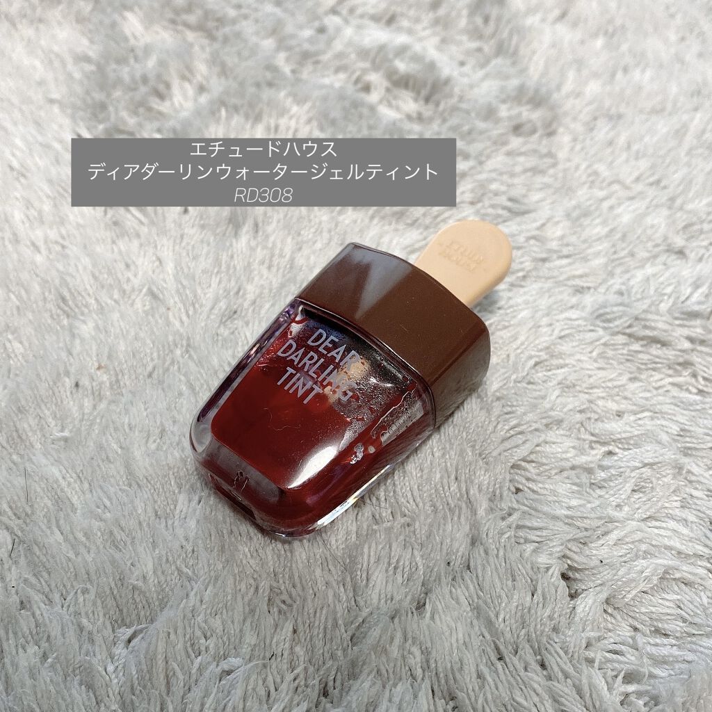 エチュードディアダーリンウォータージェルティントカラーPK004アズキバーアイスバーをモチーフとしたパッケージが可愛くて購入♪フルーツ系の甘い香りがするの🥰色味はピンクパープルのような落ち着いたピンクで、付けた時に色味のギャップがない仕上がり...