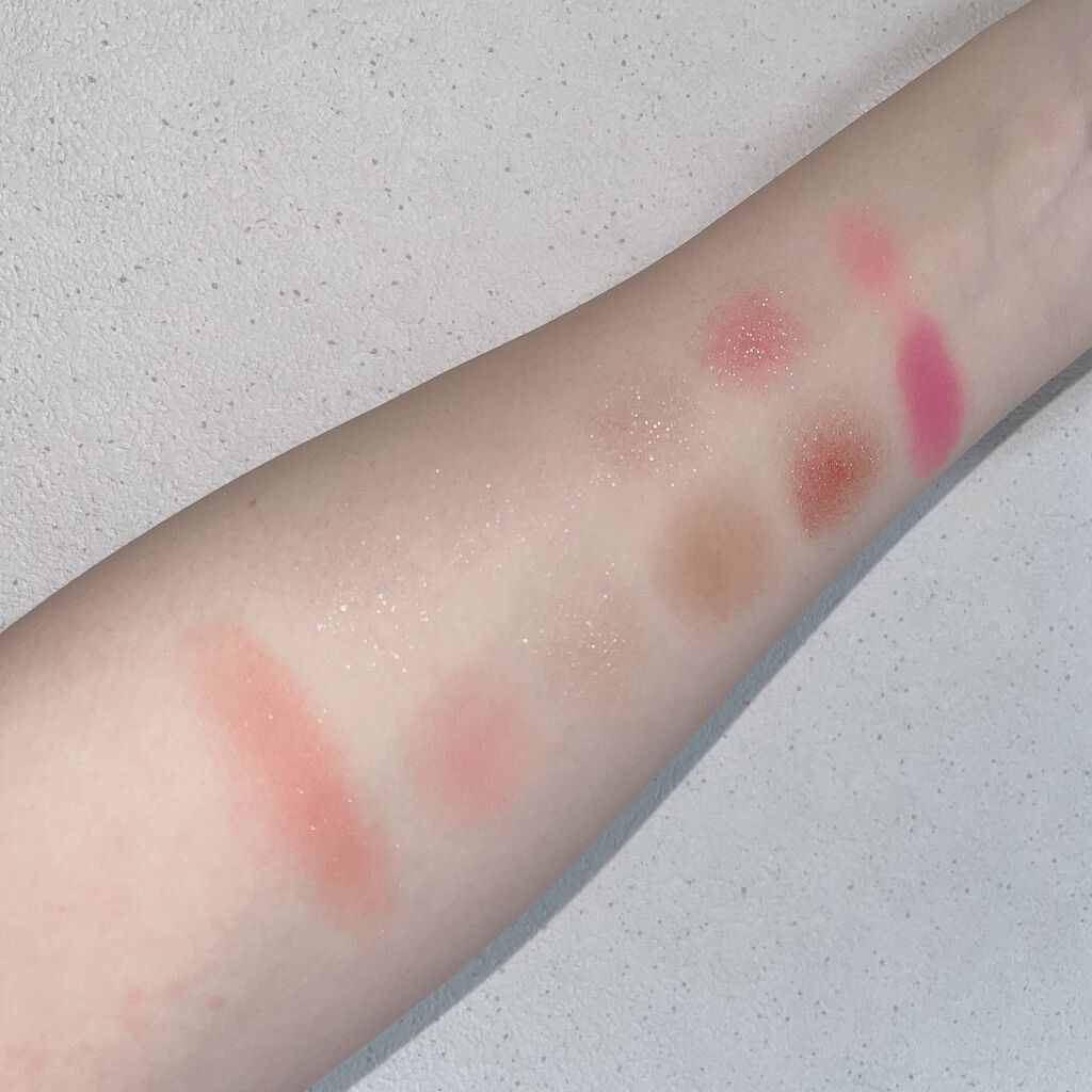 ごちゃごちゃした配色が見てて楽しいアイシャドウだけど、普段使いには厳しいよね〜。 発色がめちゃくちゃ良くてマットカラーは完全見たまんま発色。涼しげな色が揃ってるかと思いきや赤だったり青だったり茶色だったり… ラメは涼しげで濡れたような輝きだからどの色使ってメイクしても使いやすい。