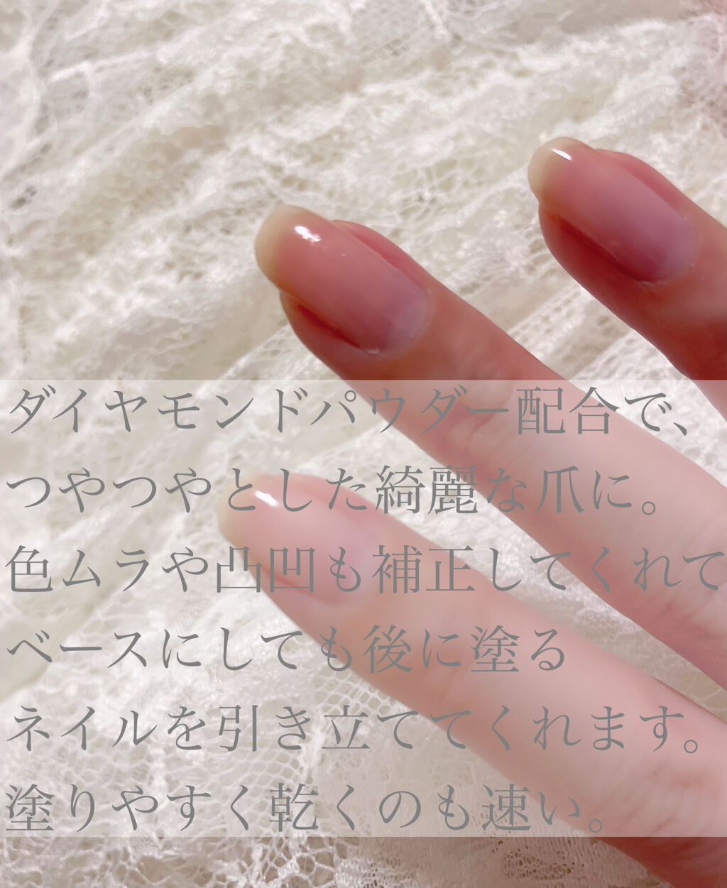 爪の黄ばみや色ムラ 凹凸をカバーし健康的な印象に仕上げる爪のファンデーションのことです。 塗っているのに塗っていない感があり爪が軽く感じることです😳 こちらはある程度爪を補強してくれるので重宝しています!