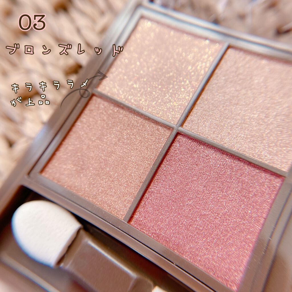 【サテン艶で簡単グラデ♡濃厚ブロンズレッド】CEZANNEニュアンスオンアイシャドウ03ブロンズレッド748円(税込)しっとりサラサラで伸びも密着もいいパウダーを採用した4色アイシャドウ♡単色でも多色でもグラデが作りやすいから色のキワを作るの...