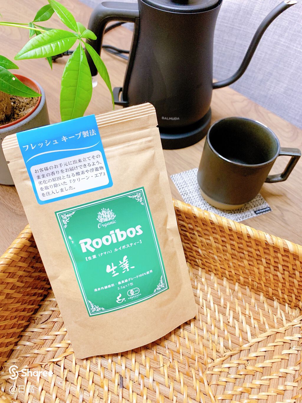 オーガニックルイボスティー。化学肥料や農薬に頼らずに作られた有機JASマークの茶葉はナチュラルで自然な風味。 香りと鮮度を保てる密封個包装だから毎回風味を味わえるのはありがたいポイント。 ノンカフェインだから夜寝る前でも安心して飲めるのがとても嬉しいですね。