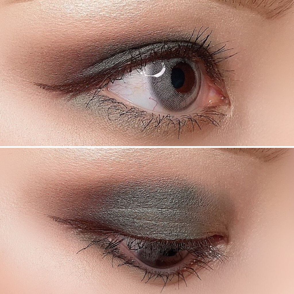 カップに入ったコーヒーのイメージで、丸いシルエットになるようにメイクしました。 目頭側のラメでブラウンシュガー、ホワイトラインでフレッシュを表現してみました☕︎ あんまりやらない丸っぽいイメージで塗り塗り。 相変わらずcoffeeloverが紫に発色するので、先に黒・茶でベース作った上に重ねて良い感じのコーヒーカラーになるように調整。