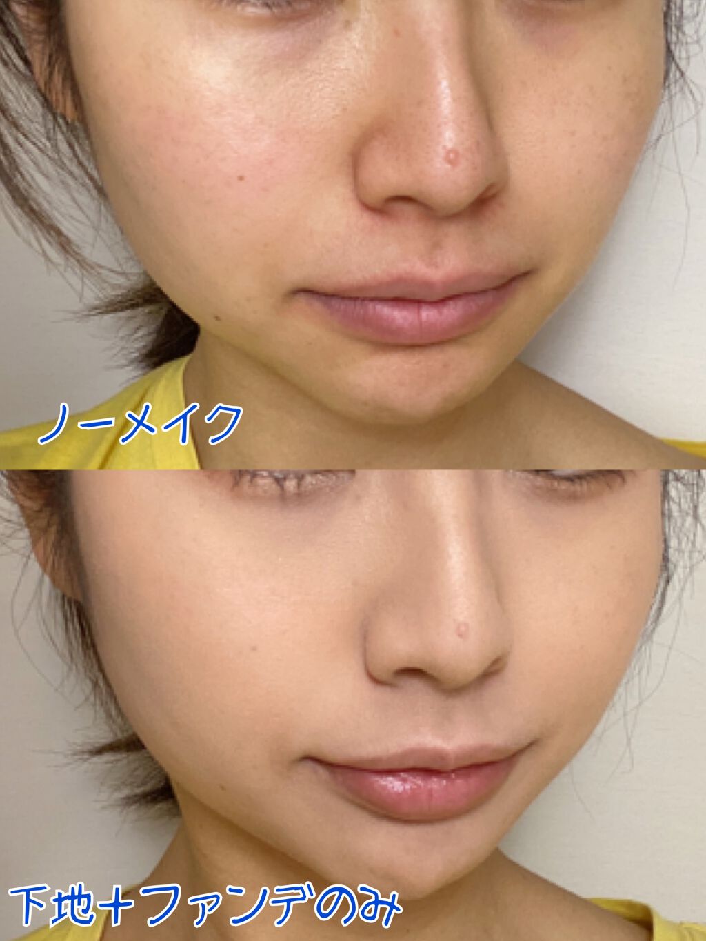 肌の凹凸を埋めてフラットにする効果と、ボンドや水のりのようにピタッと上に乗せるファンデを密着させる効果のあるコチラの下地。 一見瑞々しいテクスチャーですが、手早く広げないとすぐに乾いて滑らなくなるので塗りムラだけ出来ないよう注意が必要☝️⚠️ 私はたるみ毛穴の気になる小鼻や目の下あたりのみで全顔には使わない(1回の使用量がお米1粒程度)ので一生なくならない気がしてます…👶⏩👴