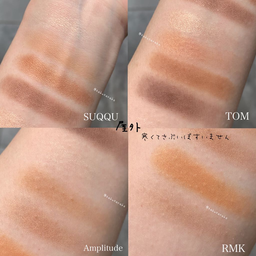 SUQQU花零 -HANAKOBOSHIは偏光パールと艶とキラキラまばゆいラメで華やかな目元に❤︎ 色によってシマーだったりラメ入ってたりタイプが違うのでいろんな使い方ができそう TOM FORD ローズ エクスポーズドはしっとりした質感で濡れ艶な色っぽい目元に❤︎ ギラギラした感じにはならず、特に左上のラメは上品な煌めきなので日常使いでも◎ どっちも好きだー🫶 通年はもちろん、特にこれからの季節にぴったりなアイカラー
