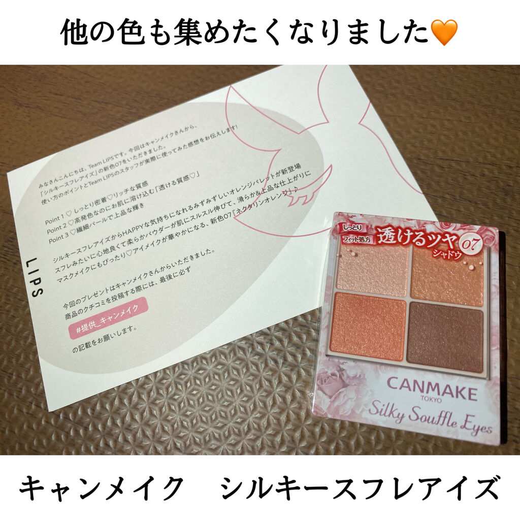 【春色オレンジ♡華やかな透けツヤカラー】キャンメイクシルキースフレアイズ07ネクタリンオレンジ825円(税込)繊細パールでツヤのある立体感まぶたにしあげてくれるプチプラアイシャドウ♡今回使った「07ネクタリンオレンジ」はジューシーなオレンジと...