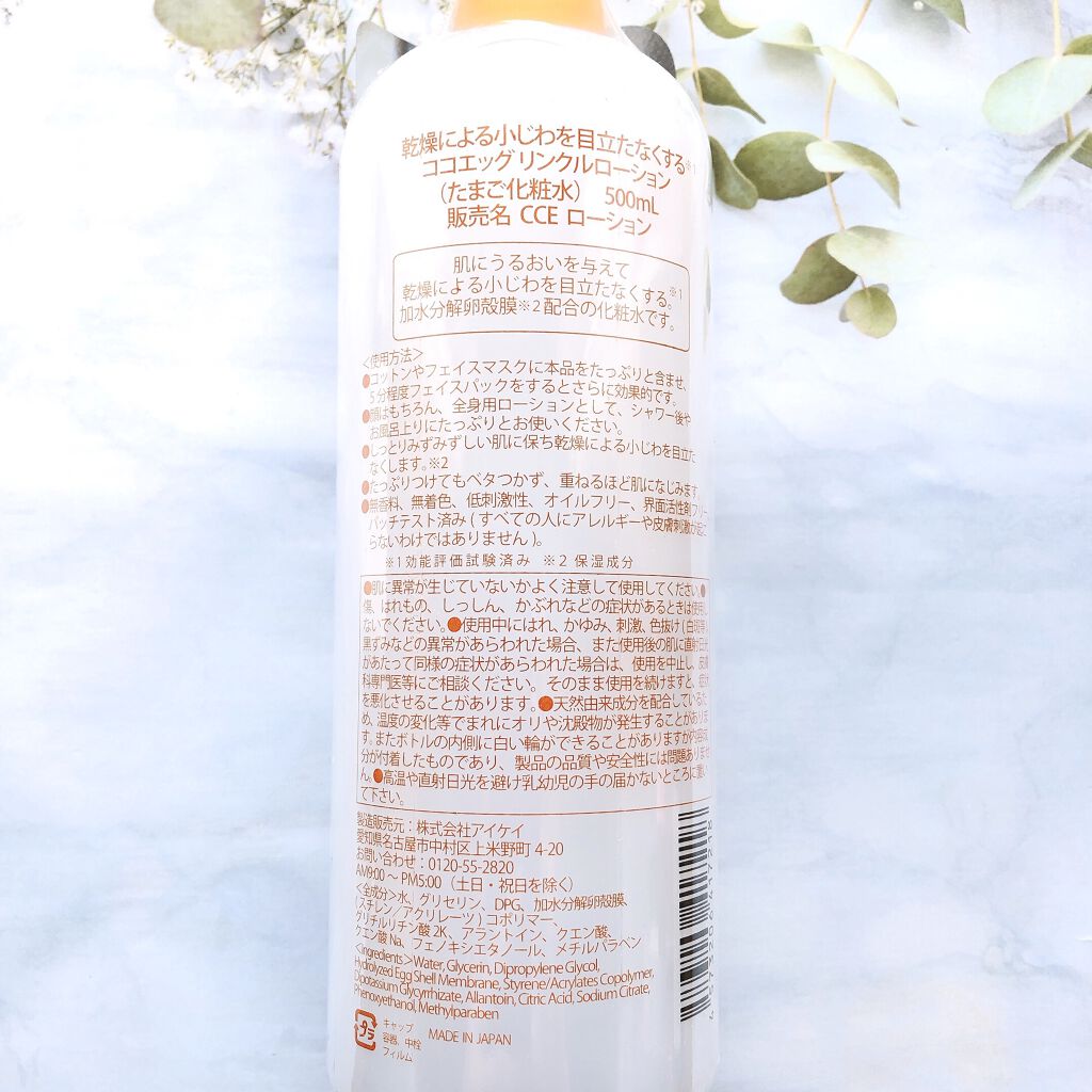 - 2023年4月3日リニューアル発売 「たまご化粧水」は卵由来の天然成分「加水分解卵角膜エキス」配合の化粧水です。 しっとりしているのにベタつかない感触でお肌になじみます。 顔や全身にも使える大容量タイプなのでお風呂上りにたっぷりお使いいただけます。 コットンなどにたっぷり含ませて5分ほどパックするとさらに効果的です。 無香料、無着色、低刺激性、オイルフリー、界面活性剤フリーです。