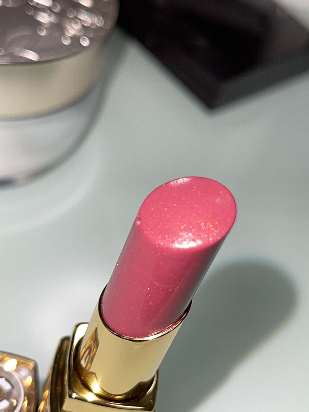 ワンストロークで明るい発色と輝きを同時にもたらすリップスティック。 唇に触れた途端にすべるように広がるフォーミュラが、瞬時につやめく唇に仕上げます。 82ライヴは、ピンクよりのピンクベージュで、ゴールドパールが入っているので華やかさもプラスされてます。上品で大人可愛い色味です。 シアーな発色で、なめらかに滑るように塗ることができて使いやすいです。