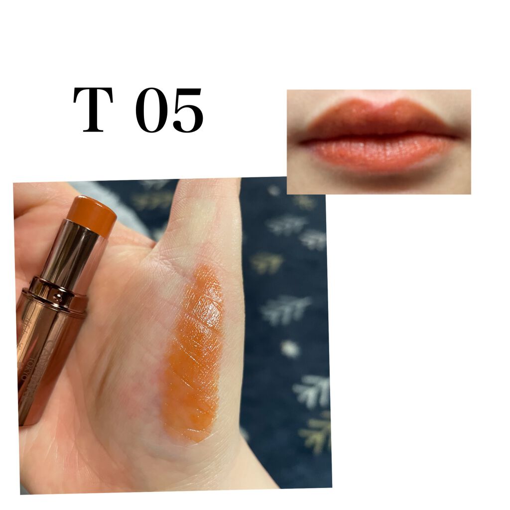- <T02 ロゼミルクティー> トリエチルヘキサノイン、リンゴ酸ジイソステアリル、ワセリン、イソステアリン酸水添ヒマシ油、ダイマージリノール酸水添ヒマシ油、合成ワックス、ヘキサ(ヒドロキシステアリン酸/ステアリン酸/ロジン酸)ジペンタエリスリチル、ミツロウ、(HDI/トリメチロールヘキシルラクトン)クロスポリマー、メタクリル酸メチルクロスポリマー、(エチレン/プロピレン)コポリマー、ミネラルオイル、キャンデリラロウエステルズ、ヒマワリ種子ロウ、ペンタステアリン酸ポリグリセリル-10、トコフェロール、グリチルレチン酸ステアリル、スクワラン、セラミドNP、ナイアシンアミド、酸化チタン、黄4、酸化鉄、赤201、青1、赤202、水酸化Al、赤223 <T03 ディアレストレッド> トリエチルヘキサノイン、リンゴ酸ジイソステアリル、ワセリン、イソステアリン酸水添ヒマシ油、ダイマージリノール酸水添ヒマシ油、合成ワックス、ヘキサ(ヒドロキシステアリン酸/ステアリン酸/ロジン酸)ジペンタエリスリチル、ミツロウ、(HDI/トリメチロールヘキシルラクトン)クロスポリマー、メタクリル酸メチルクロスポリマー、(エチレン/プロピレン)コポリマー、ミネラルオイル、キャンデリラロウエステルズ、ヒマワリ種子ロウ、ペンタステアリン酸ポリグリセリル-10、トコフェロール、グリチルレチン酸ステアリル、スクワラン、セラミドNP、ナイアシンアミド、黄4、酸化チタン、赤201、赤202、酸化鉄、赤223、水酸化Al <T04 スウィートガナッシュ> トリエチルヘキサノイン、リンゴ酸ジイソステアリル、ワセリン、イソステアリン酸水添ヒマシ油、ダイマージリノール酸水添ヒマシ油、合成ワックス、ヘキサ(ヒドロキシステアリン酸/ステアリン酸/ロジン酸)ジペンタエリスリチル、ミツロウ、(HDI/トリメチロールヘキシルラクトン)クロスポリマー、メタクリル酸メチルクロスポリマー、(エチレン/プロピレン)コポリマー、ミネラルオイル、キャンデリラロウエステルズ、ヒマワリ種子ロウ、ペンタステアリン酸ポリグリセリル-10、トコフェロール、グリチルレチン酸ステアリル、スクワラン、セラミドNP、ナイアシンアミド、酸化鉄、酸化チタン、黄4、赤202、赤223、水酸化Al、赤201 <T06 サクラエンジェル> トリエチルヘキサノイン、リンゴ酸ジイソステアリル、ワセリン、イソステアリン酸水添ヒマシ油、ダイマージリノール酸水添ヒマシ油、合成ワックス、ヘキサ(ヒドロキシステアリン酸/ステアリン酸/ロジン酸)ジペンタエリスリチル、ミツロウ、(HDI/トリメチロールヘキシルラクトン)クロスポリマー、メタクリル酸メチルクロスポリマー、(エチレン/プロピレン)コポリマー、ミネラルオイル、キャンデリラロウエステルズ、ヒマワリ種子ロウ、ペンタステアリン酸ポリグリセリル-10、トコフェロール、グリチルレチン酸ステアリル、スクワラン、セラミドNP、ナイアシンアミド、酸化チタン、水酸化Al、赤223、赤104(1)、黄4、赤201