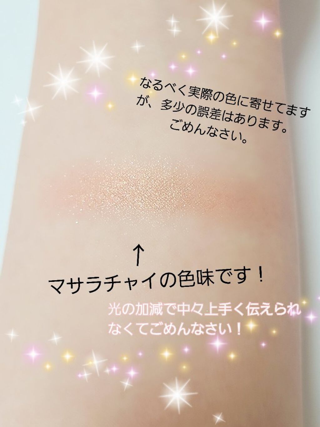 白っぽいベージュで、ラメ感は控えめ、持っている6種類で1番色味が出ます!ちょっとブルベ感もある色味なので、ふんわりと付けています🤍 使いやすさNo.1な、ほんわりしたベージュ🍑程よいラメ感で、可愛い、、、💓 YouTuberのありちゃんがおすすめしていた偏光感のあるきらめきで、付けると華やかな目元に仕上がります✨