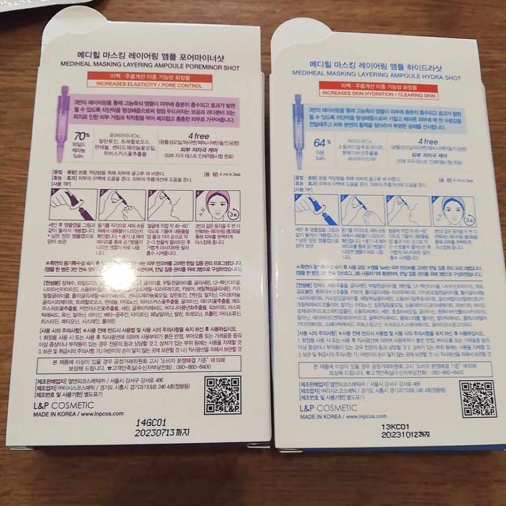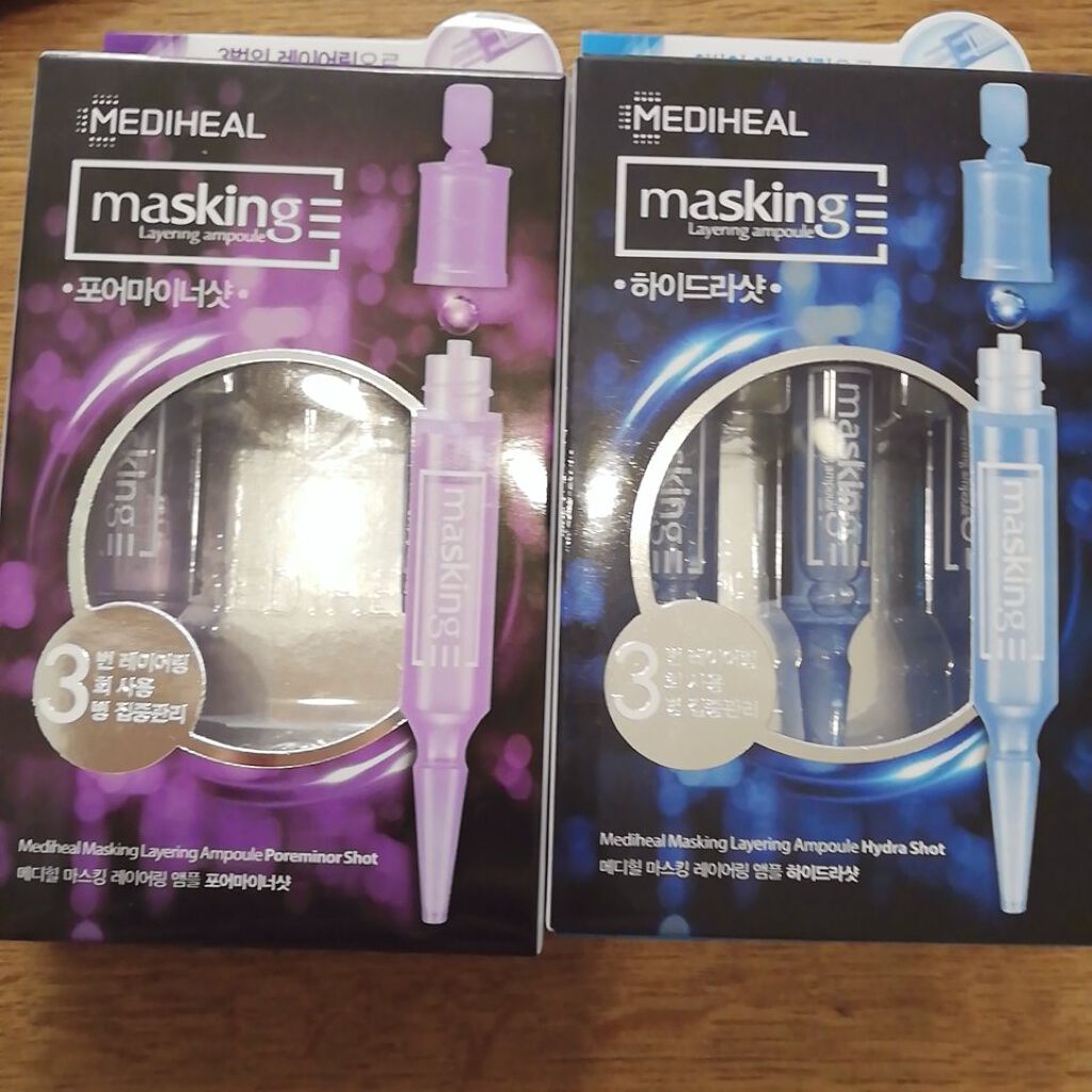 〖正規品〗昨日Qoo10で1600円くらいでこの3点を買ったけど...⚠︎⚠︎⚠︎やっぱり偽物⚠︎⚠︎⚠︎メディヒルティーツリーケアソリューションアンプルマスク青メディヒルマスキングレイヤリングアンプル紫メディヒルマスキングレイヤリングアンプ...