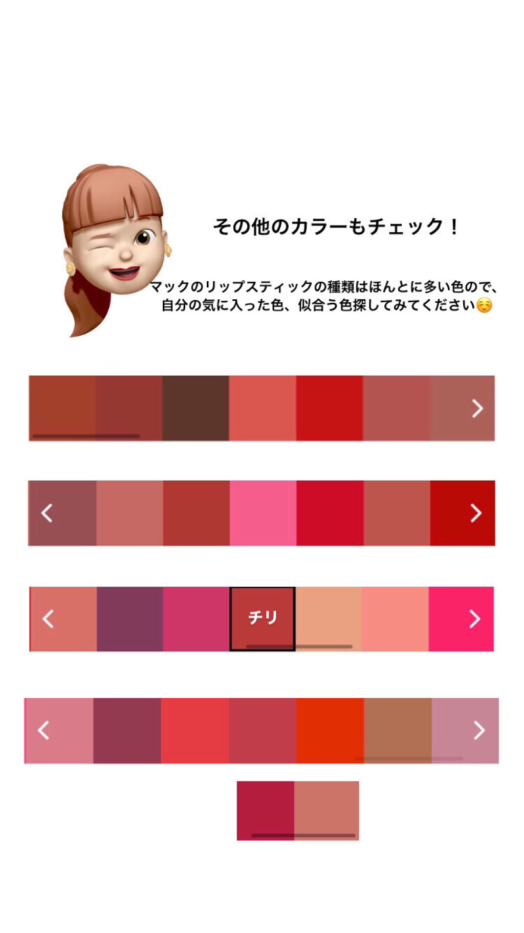 M・A・Cリップスティックチリ#M・A・Cリップスティックチリ—————————————————————🍒score80のわけ↓↓↓M・A・Cのリップスティックはとにかく発色がいい❗️これはほんとに100点💯人塗りで充分に色もつくし濃すぎるこ...