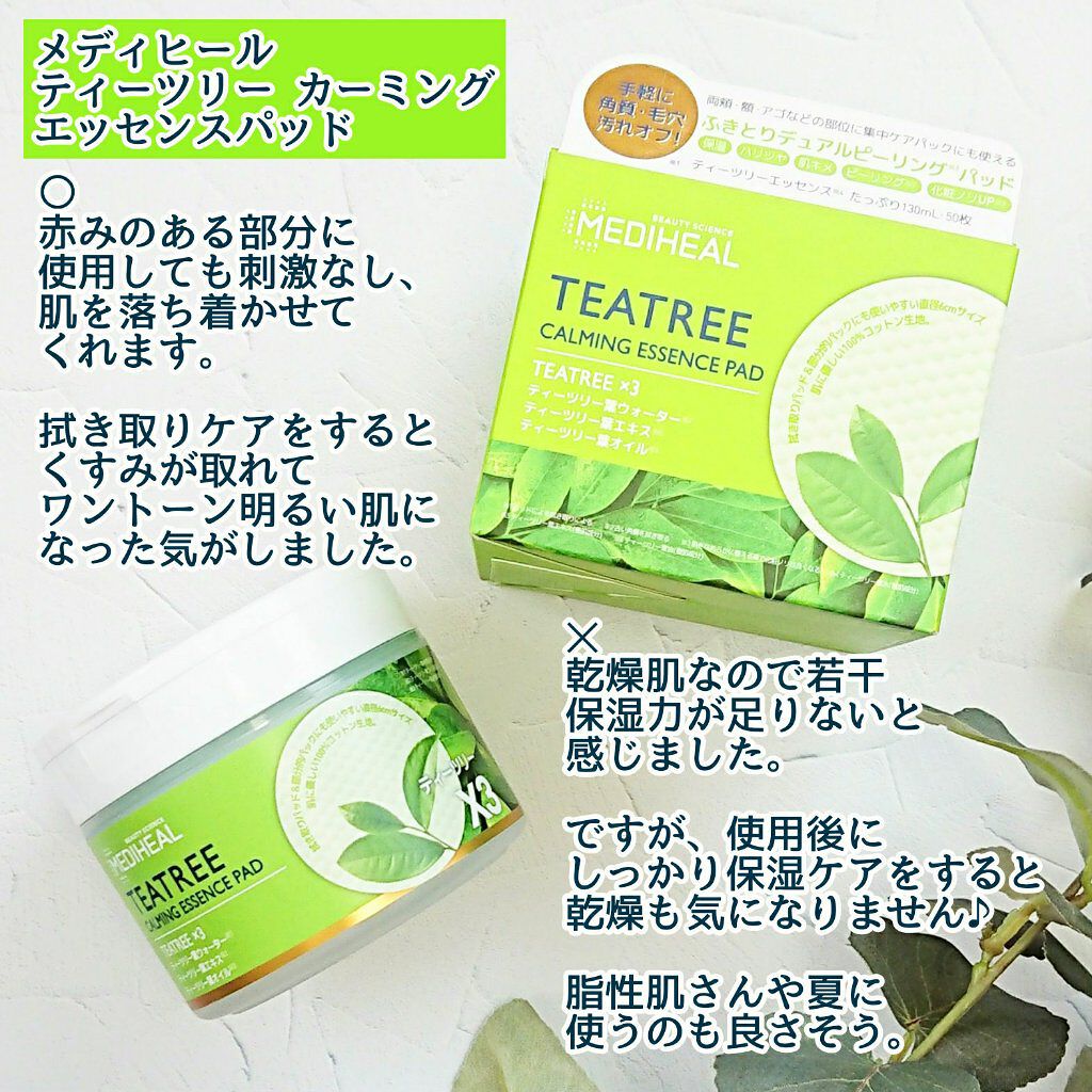 MEDIHEAL💚ティーツリーカーミングエッセンスパッド50枚入り¥1,870ティーツリーのトナーパッドが使いたくて、レビューを見て購入しました!2025年9月20日現在、LIPSトナーパッドランキング7位!(少し前まで6位でした)なのに生産...