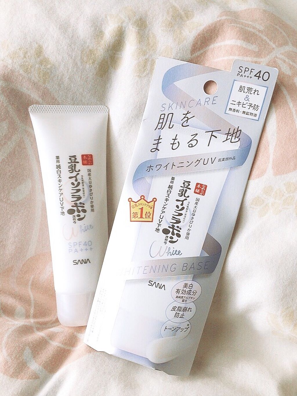 - <薬用美白スキンケアUV下地> 豆乳の美白スキンケアUV下地。肌荒れ&ニキビ予防しながら美白!メラニンの生成を抑え、シミ・そばかすを防ぎます。トーンアップ(メイク効果による)&皮脂崩れ防止。化粧水・美容液・乳液・クリーム・UVカット・化粧下地の1本6役。SPF40・PA+++。[販売名:サナ なめらか本舗 薬用美白スキンケアUV下地]