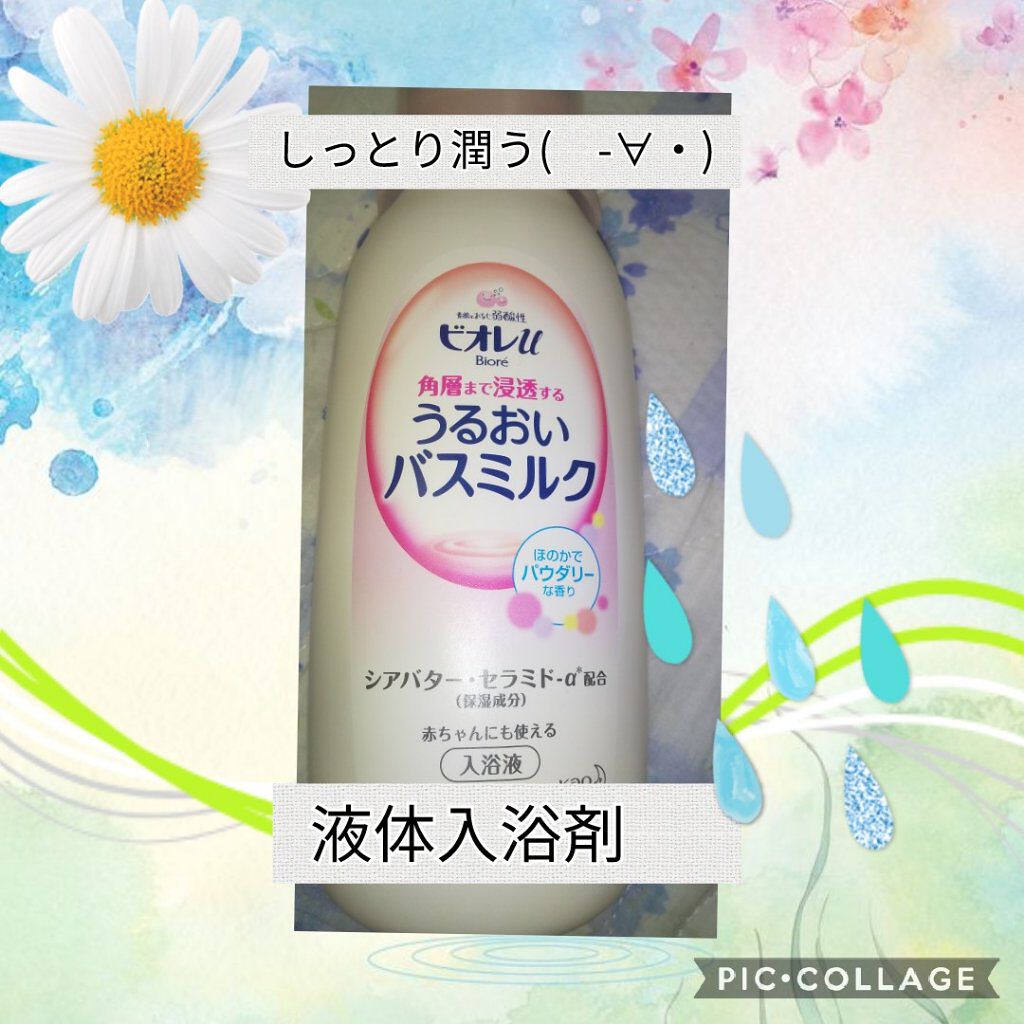 保湿入浴液というもので、大変である子どものお風呂上がりのボディケアがこれで🆗というもの😄 混ぜると乳白色になり、ベビーパウダーのような香りが😚 子どもたちにも高評でした✌️
