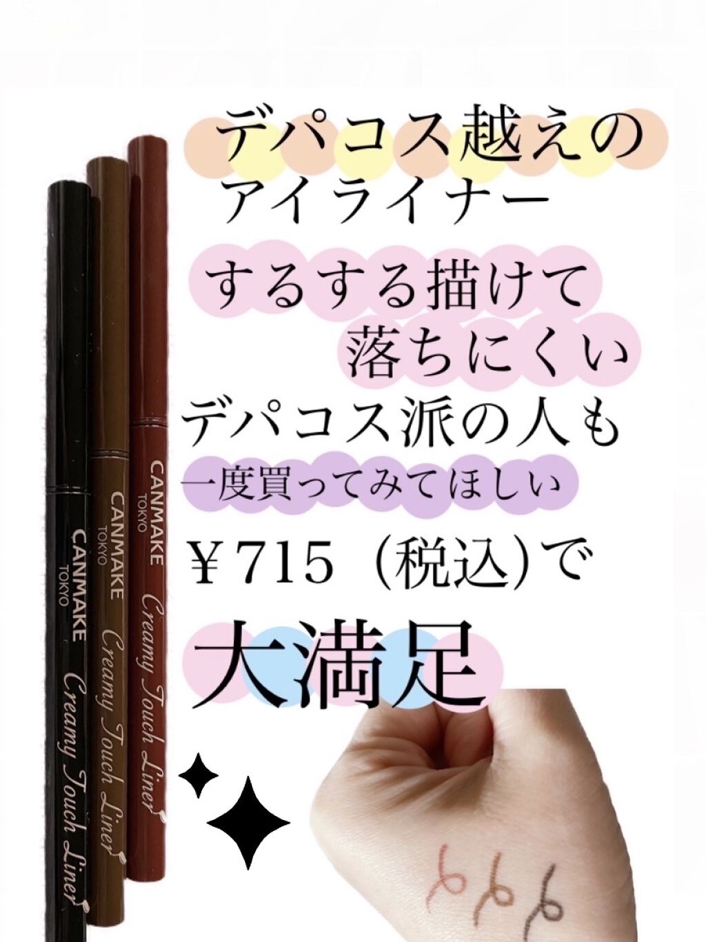 言わずと知れたクリーミータッチライナー!改めて人気の理由をまとめました🧁*キャンメイククリーミータッチライナー¥715私も大好きなアイライナーですがアイライナーって気にいると同じものをリピしがちな気がするので、まだ試してない人はぜひ!ラブライ...