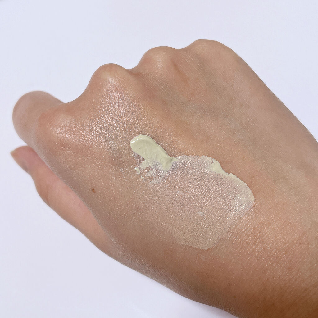 - 赤みをきちんとカバーするスキンケア兼用下地。緑色のクリームが肌でベージュ色に変化し、ニキビ跡やくすみをカバーします。