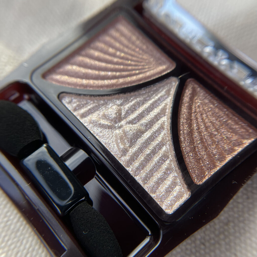 - パウダーなのにみずみずしい♥ 自然な立体感をつくりだす3色アイシャドウパレット 仕上げのコートで、ジューシー感&モチUP! メインカラー&ラインカラーはフィッティングオイル配合のしっとりパウダーで、 まぶたに吸いつくように溶け込み、ジューシーコートスフレで覆うことによって、 濡れたようにツヤめく愛されまぶたで透明感のある目元を演出します。
