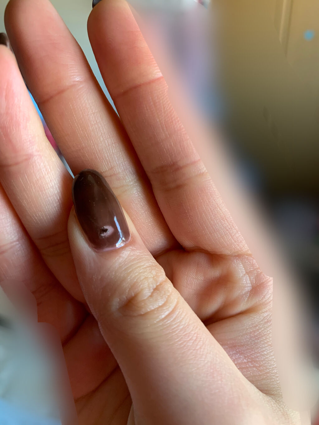 ショックだったので注意喚起として投稿です。DAISOソンプチューネイルポリッシュ64このポリッシュで爪が画像のような色素沈着を起こしました。もちろんベースコートは塗っています(オルビスのものです。)Twitterで検索をかけたら同じようなこと...