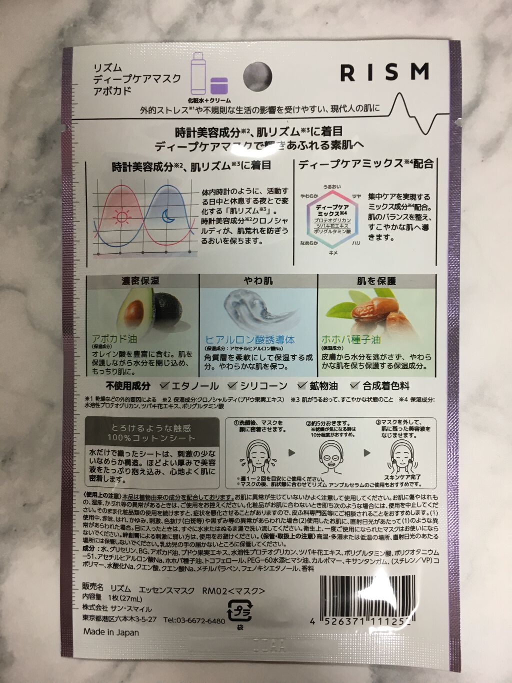 今回はRISMのマスク3種類、ディープケアマスクビタミン、ディープケアマスクアロエ、ディープケアマスクアボカドを使ってみたのでレビューしたいと思います♪全体的な感想としては少し物足りない感じがしました、、😥濃密保湿と書いてあるアロエとアボカド...