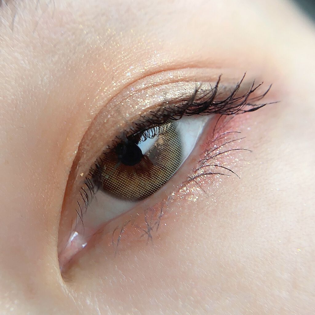 la peau de gem.がなんだかとっても盛れました🧡 色名のピンクは正直感じないけど笑 とっても大人っぽいテラコッタオレンジのマット(ラメ入り)✖︎しっとり微細なゴールドラメが美しい。 よしみちカラコン、シャボン玉カラコンでお馴染みの全人類似合うグレーカラコンは付け心地も抜群で大人カジュアルにもぴったり。