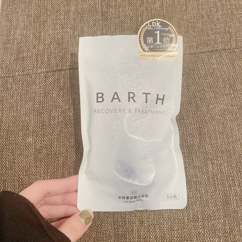 SNSで話題になっていたbarthの薬用BARTH中性重炭酸入浴剤です🤍 疲労回復や肩のこり、腰痛や冷え性などに効くと聞いて購入しました🫶 湯船に入れると柔らかいお湯になり、肌がツルツルして温泉みたい~♨ お風呂から出たあともじわじわポカポカしてして温まる感じがしました🐵 値段は1回300円と安くは無いお値段ですが、実際に使ってみると翌朝疲労感が軽減されて、手先の冷えも改善されたように感じたのでぜひ使ってみてください🐨