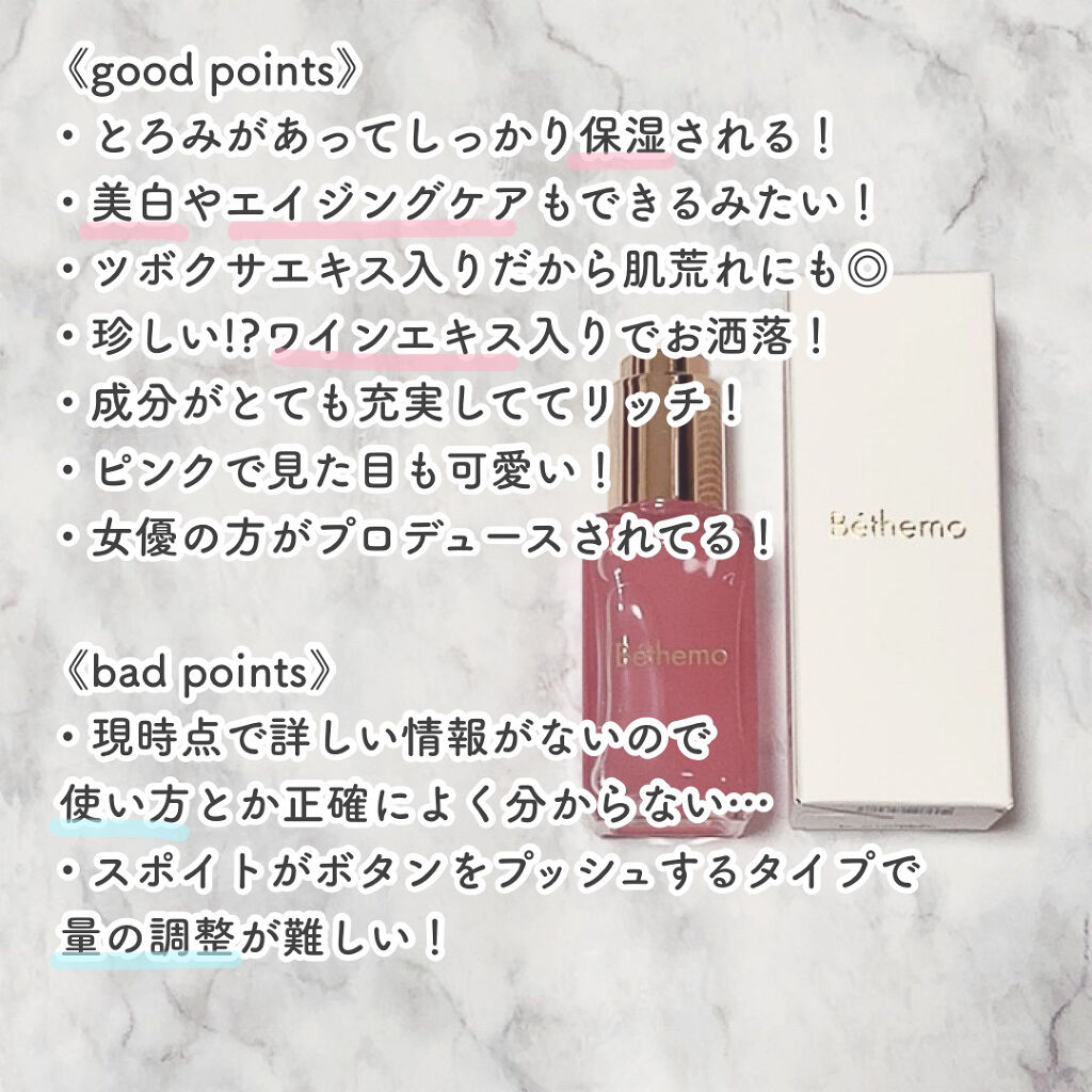 🌹𝖡𝖾𝗍𝗁𝖾𝗆𝗈エイジングケア塗るナイトパック美容液🌹✨女優の夏菜さんがプロデュースした、ピンクのスキンケア美容液✨美白・シワ改善に効果があるとされているポリフェノールを含む、ダマスクローズオイルとワインエキスを贅沢に配合されているようです😳...