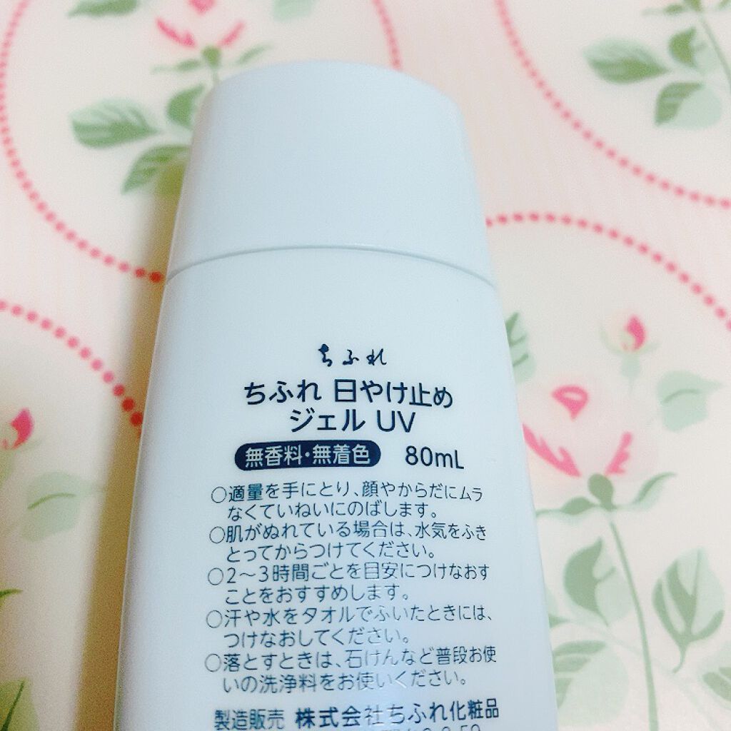 - スキンケア感覚で使える、ジェルタイプの日やけ止め。 紫外線や乾燥にさらされた肌をうるおいでつつみ込む、スキンケア感覚で使える日やけ止めジェル。 とろりとしたやわらかなミルキージェルが、なめらかにのびてするんと肌になじみます。美容液*と同じ保湿成分ヒアルロン酸・トレハロース配合。 化粧下地としてもお使いいただけます。 *ちふれ 美容液 ノンアルコールタイプ 保湿成分:ヒアルロン酸・トレハロース 配合 SPF38 PA+++・無香料・無着色・石けんで落とせる・顔、からだ用 【毎日の肌をいたわる日やけ止めジェル】 「紫外線にあたったり、日やけ止めをぬると肌が疲れる…」と感じたことはありませんか?毎日の肌はエアコンや外気による乾燥、強い紫外線や汗によってダメージを受けています。 これらのダメージを防ぐために、日頃から「保湿」・「UVカット」を意識したケアが大切です。 ?だからちふれの日やけ止めジェル!3つのポイント? ■Point1 とろりとやわらかなのに肌さらさら!気持ちいい! ・とろりとしたやわらかなミルキージェルが肌をいたわるようにするんとなじみ、つけたてさらさら。 ■Point2 素肌に嬉しい SPF38 PA+++ ・真夏の日常生活にも十分なUVカット効果と素肌のことを考えた最適バランスのSPF38 PA+++。 ■Point3 保湿成分ヒアルロン酸・トレハロース配合 ・美容液*と同じ保湿成分ヒアルロン酸・トレハロース配合。 乾燥しがちな肌にみずみずしいうるおいを与えます。 *ちふれ 美容液 ノンアルコール タイプ 【使用方法】 ・適量を手にとり、顔やからだにムラなくていねいにのばします。 肌がぬれている場合は、水気をふきとってからつけてください。 ・2?3時間ごとを目安につけ直すことをおすすめします。 ・汗や水をタオルでふいた時には、つけ直してください。 ・落とす時は、石けんなど普段お使いの洗浄料をお使いください。 【環境にやさしいパッケージ素材】 ・この商品の箱はサトウキビからつくられた環境にやさしいプラスチックを使用しています。