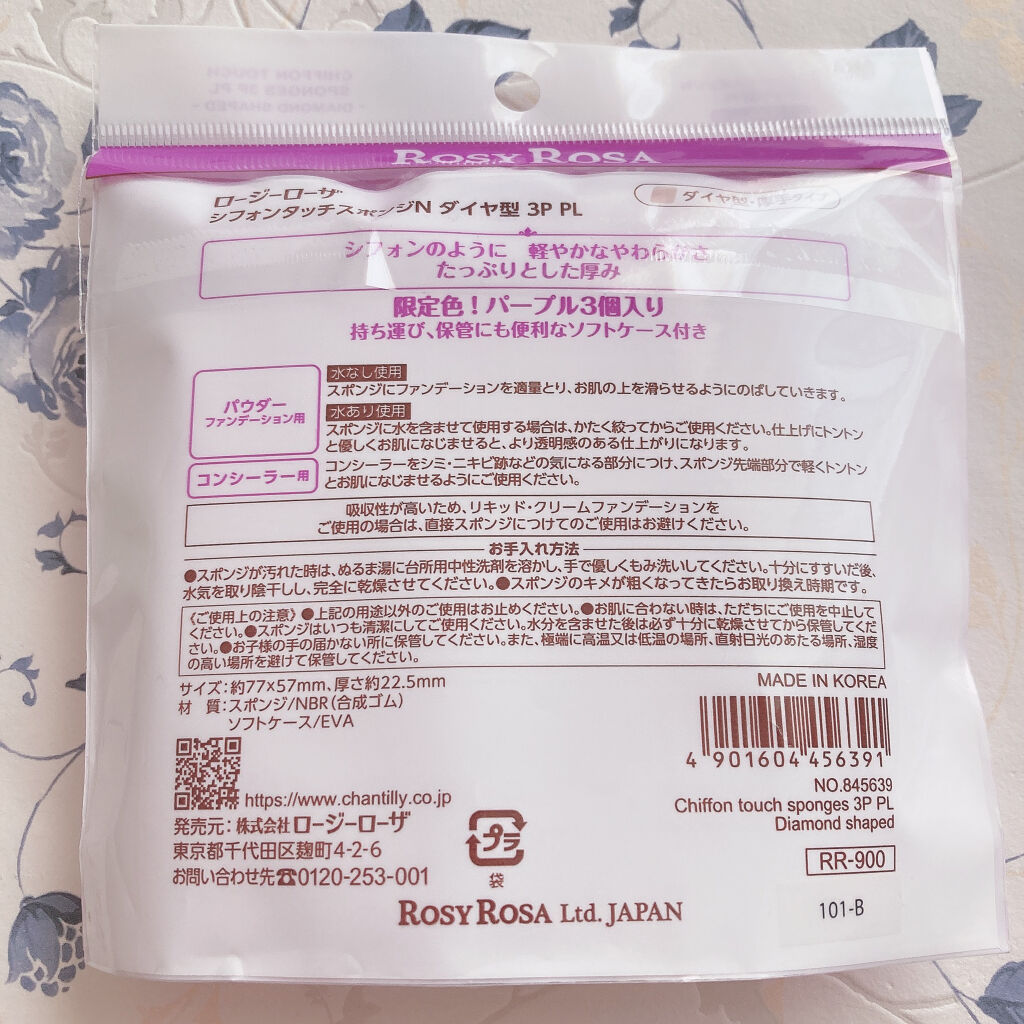 \ふわっふわ質感のメイクスポンジ/ロージーローザシフォンタッチスポンジNダイヤ型1個入り私が昔々から溺愛しているロージーローザのシフォンタッチスポンジ💓💓大きさも使いやすく肌当たりもよくふかふかで使いやすいです😊コンシーラーを塗布したりベース...