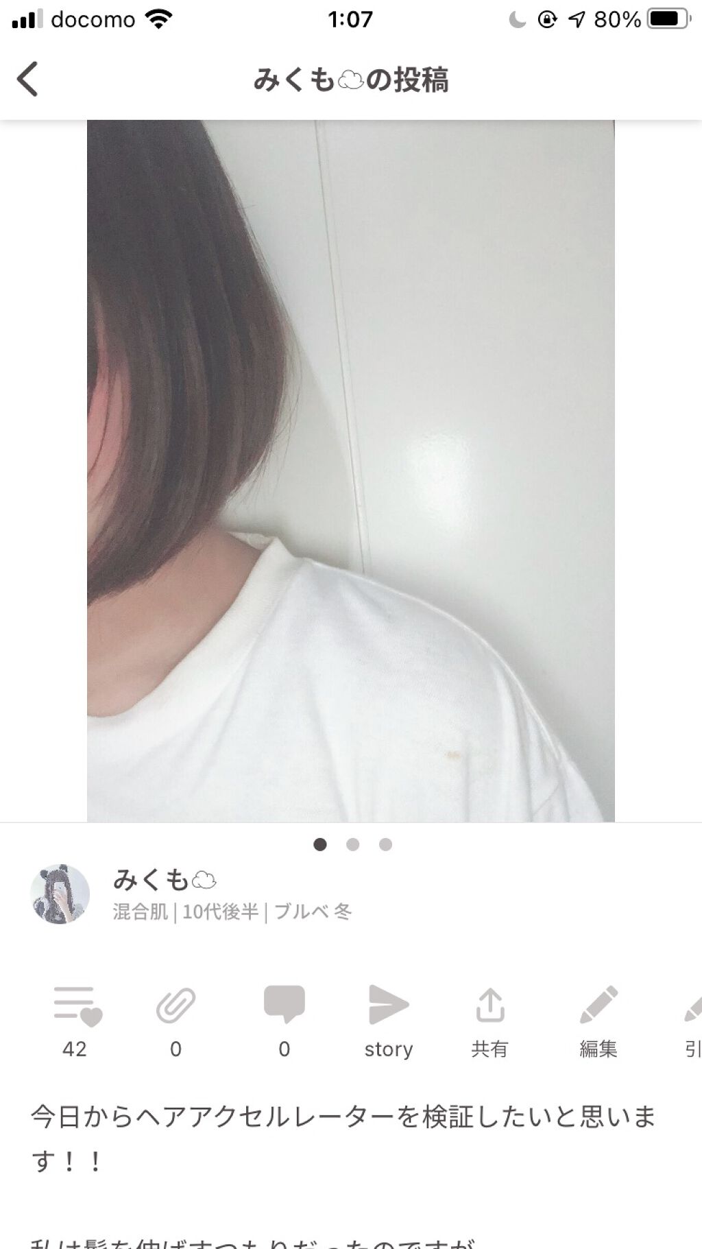 今日からヘアアクセルレーターを検証したいと思います!!私は髪を伸ばすつもりだったのですが、ウルフヘアをした際の段を揃えるために美容院に行ったら思ってたより切られすぎてしまったので、早く伸ばせたらいいなと思います😖ヘアアクセルレーターとDHCの...