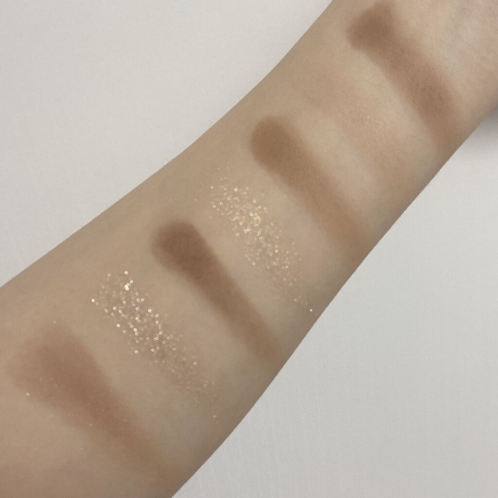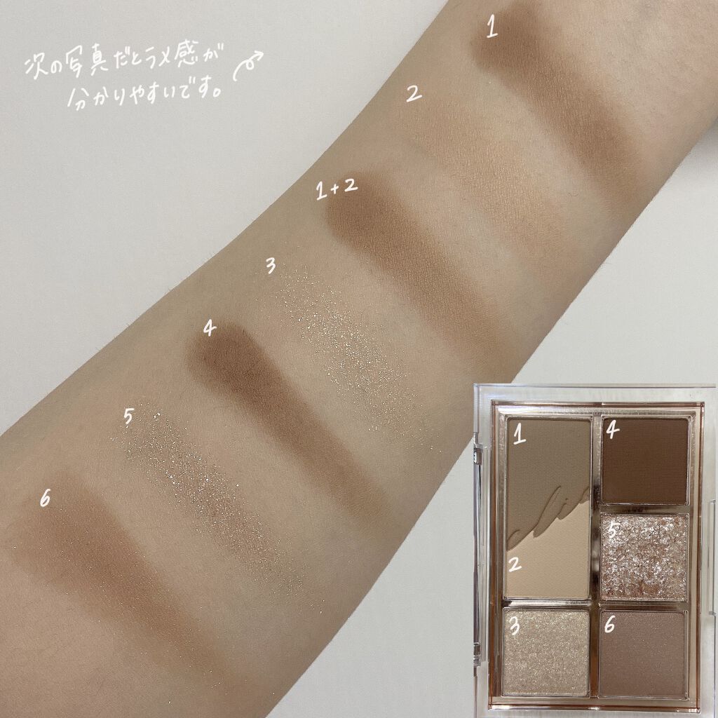 - 同系色陰影カラーと上品でクリアなグリッターの組み合わせの必要なカラーだけ詰め込んだミニアイパレット!