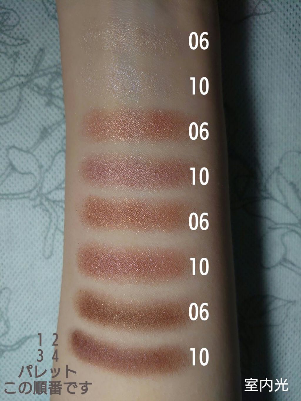 ①は、キラキラピンクベージュ✨ ベースにしても可愛いし、部分使いで立体感を出すのにも使える万能色です! ②のオレンジ味を帯びたブラウンは、イエベ向きの色ですが、ソフトマットな質感+薄づきなので、ブルベ夏でも全然使えます!! ③は、発色ありの偏光パールで、④はほぼ発色しない偏光パールになってます。 ミントグリーン系は、使い方を間違えると年代を感じてしまうので発色しないぐらいが好みです❣️
