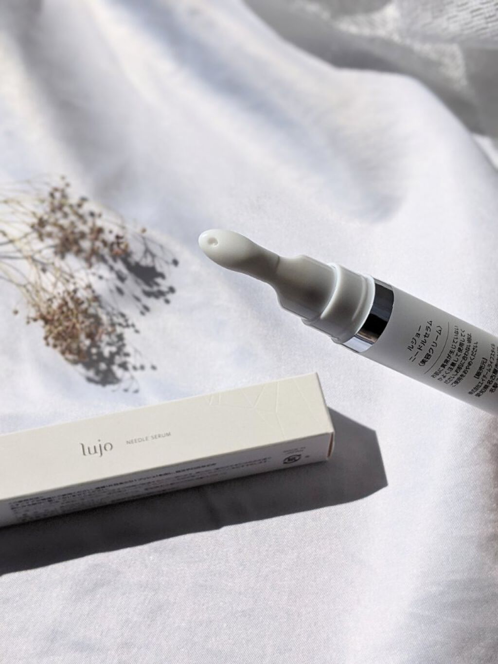 \日本製のマイクロニードル美容液/lujoニードルセラム針🪡美容液って刺激がありそうって敬遠してたけど、実際つかってみたら全然痛くないしコックリとしたクリームで肌にピタッと密着してよく馴染む✨ヘッドの形が特殊で目元や口元のほうれい線に塗りやす...