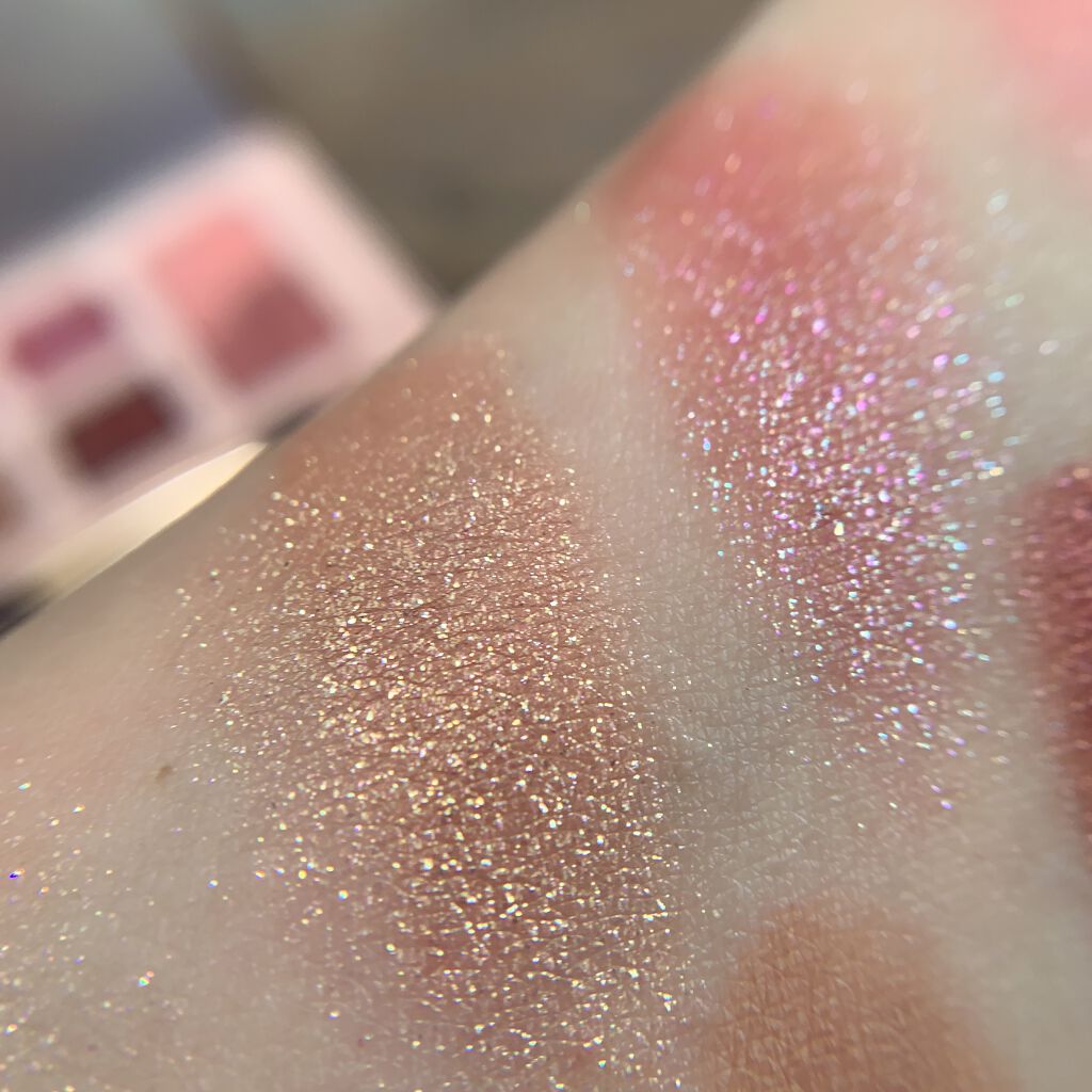 パッケージの上蓋がウォーターシールみたいにスパンコールが揺れ動くオシャレな作りで、オシャレなデザインなのが魅力。 ラメがめちゃくちゃかわいいしマットカラーの発色がえげつないのよ。 落ち着いた色合いのマットカラーも入ってるから意外と普段メイクにも使えちゃうというね。