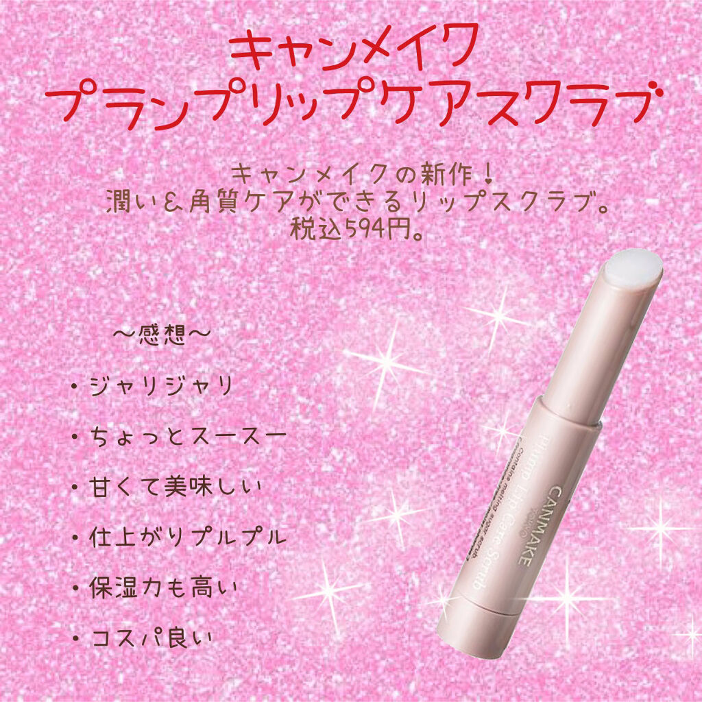 *#リピ買いコスメ*💄CANMAKEキャンメイク プランプリップケアスクラブ *01クリアキャンメイクのプランプリップケアスクラブ🌟もう20本はリピしてる!レブロンのシュガースクラブよりもスクラブがの粒が細かい(?)から優しい...