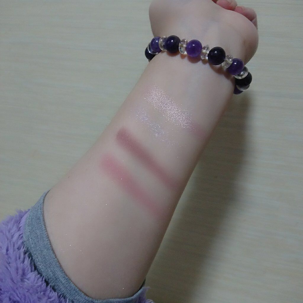 #えりぃのスウォッチです!#ケイト#KATE#3DプロデュースシャドウPU-1#ムーディーエクステンション1540円ピンク味の強いパープル。ラメは大粒なので目元以外には使えなさそう。粉質やラメ感が良くて、さすがケイト!肌なじみが良いのに、目元...
