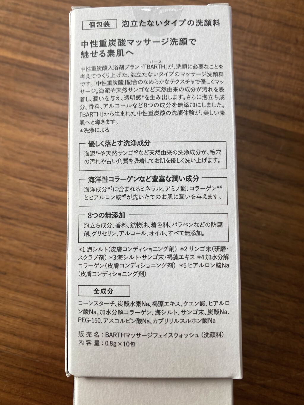 - <10包> コーンスターチ、炭酸水素Na、褐藻エキス、クエン酸、ヒアルロン酸Na、加水分解コラーゲン、海シルト、サンゴ末、炭酸Na、PEG-150、アスコルビン酸Na、カプリリルスルホン酸Na <30包> コーンスターチ、炭酸水素Na、褐藻エキス、クエン酸、ヒアルロン酸Na、加水分解コラーゲン、海シルト、サンゴ末、炭酸Na、PEG-150、アスコルビン酸Na、カプリリルスルホン酸Na < ボトル> コーンスターチ、炭酸水素Na、褐藻エキス、クエン酸、ヒアルロン酸Na、加水分解コラーゲン、海シルト、サンゴ末、炭酸Na、PEG-150、アスコルビン酸Na、カプリリルスルホン酸Na <トライアルボトル> コーンスターチ、炭酸水素Na、褐藻エキス、クエン酸、ヒアルロン酸Na、加水分解コラーゲン、海シルト、サンゴ末、炭酸Na、PEG-150、アスコルビン酸Na、カプリリルスルホン酸Na