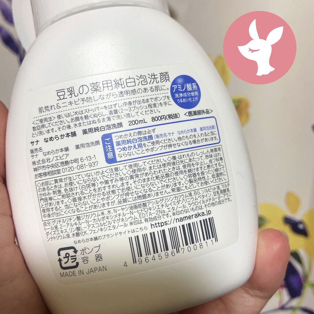 - 豆乳の純白泡洗顔。忙しい朝にも簡単プッシュで、肌荒れ&ニキビ予防しながら透明感のある肌に洗い上げます。 つめかえ用もあるので、お得にご使用いただけます。(つめかえ用を使用する際は、必ず薬用泡洗顔の容器につめかえてください) [販売名:サナ なめらか本舗 薬用泡洗顔]