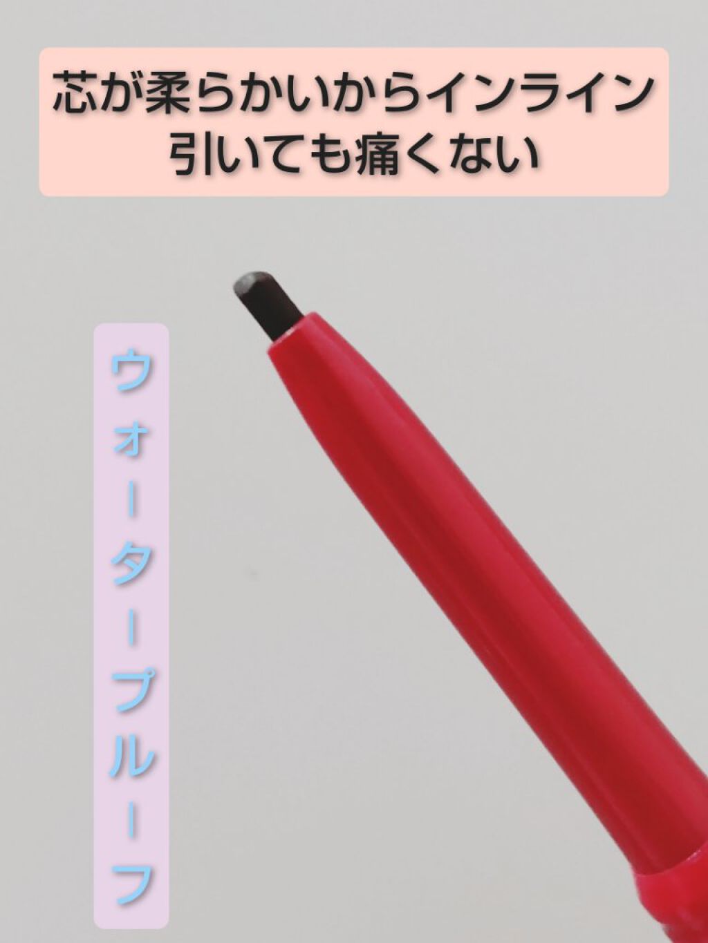 - 細いラインもスルスル描けて自然なクッキリラインがピタッと密着。 ◆さらに目もとにやさしい ・美容液成分配合。メイクしながら目もとケア。 ・普段のクレンジングで簡単オフ! ・肌を染めない顔料タイプ。くすみのもとを残さない。 ◆描きたての自然なラインが1日*続く! (ウォータープルーフタイプ) *効果には個人差があります
