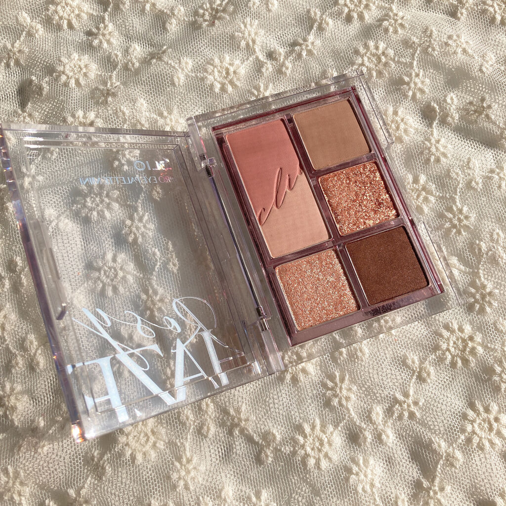 - 同系色陰影カラーと上品でクリアなグリッターの組み合わせの必要なカラーだけ詰め込んだミニアイパレット!