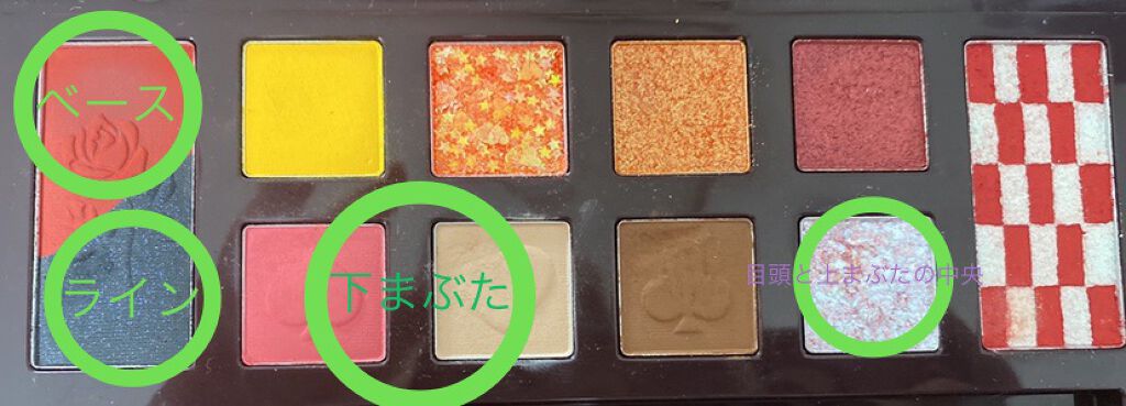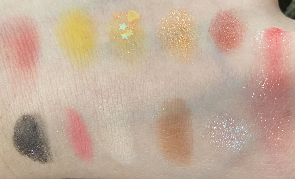 ごちゃごちゃした配色が見てて楽しいアイシャドウだけど、普段使いには厳しいよね〜。 発色がめちゃくちゃ良くてマットカラーは完全見たまんま発色。涼しげな色が揃ってるかと思いきや赤だったり青だったり茶色だったり… ラメは涼しげで濡れたような輝きだからどの色使ってメイクしても使いやすい。