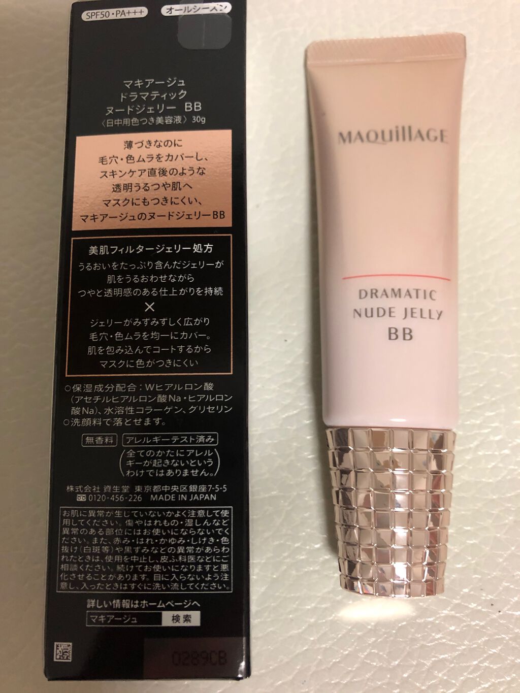 - 薄づきなのに毛穴・色ムラをカバーし、スキンケア直後のような透明うるつや肌へ。 マスクにもつきにくいマキアージュのヌードジェリー BB。 うるおいをたっぷり含んだジェリーが肌をうるおわせながらつやと透明感のある仕上がりを持続。 ジェリーがみずみずしく広がり毛穴・色ムラを均一にカバー。 SPF50+ ・ PA+++ 13時間化粧もち*データ取得済み(メーカー調べ・効果には個人差があります) *(テカり・皮脂くずれ・毛穴落ち・よれ・薄れ)のなさ"