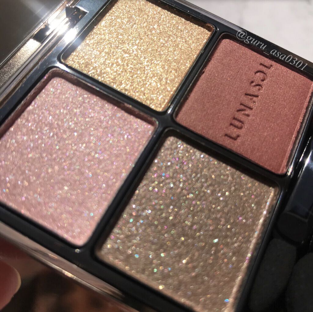 ルナソルアイカラーレーションスペシャルエディション EX04ベージュインブルームキラキラでめっちゃきれーい淡いカラーが多いけど、ギラギラのラメが輝いてまさにホリデー!!キラキラはやっぱりホリデーシーズンに取り入れたくなるどれも淡い発色なので失...