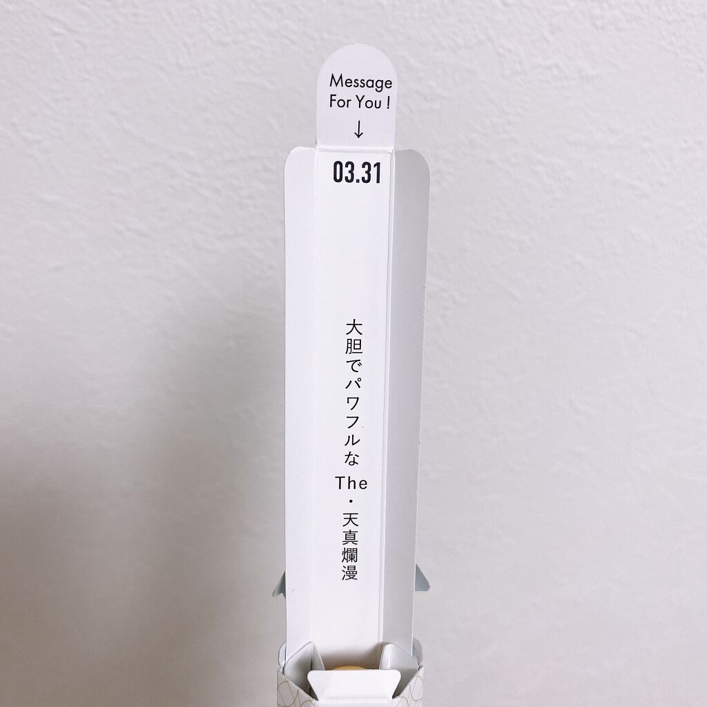 - バースデーフレグランスは『月ごとのオイル12 種』×『日ごとのフレグランス31 種』で構成されている366種類の香水です。1日として同じ香りはなく、記念日や好きなアーティストの誕生日など、特別”が生まれた日の贈り物にピッタリです。商品は店舗だけでなく、オンラインストアでの購入も可能なため、どなたでも購入しやすくなっています。366 種それぞれにメッセージが添えられており、開封後初めて見ることができるため、おみくじのような感覚で楽しむことができます。 香り:366種類それぞれの香り