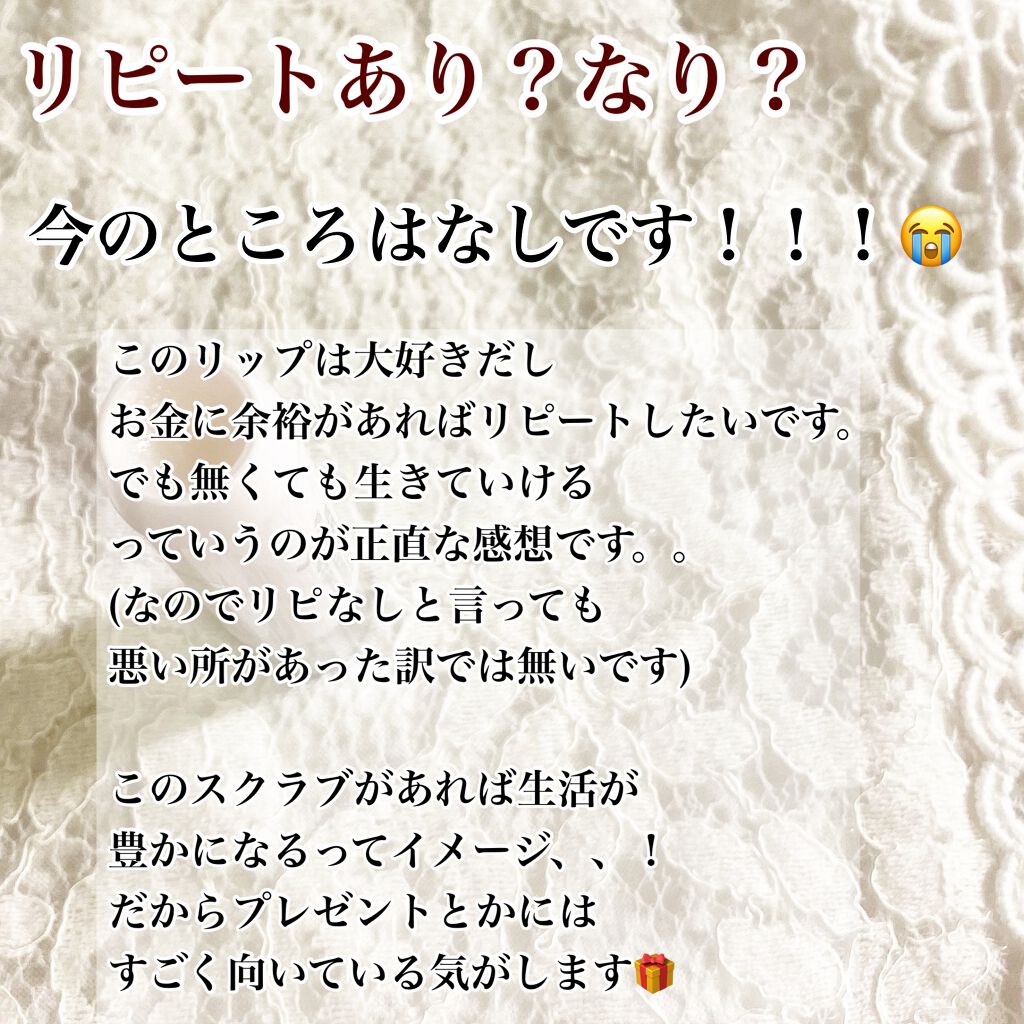 | リップスクラブランキング第9位 | しゃりしゃりのお砂糖スクラブが古い角質を優しくオフ🫧色付きでほんのり血色感も出せてお気に入り🫶🏻 | 詳細を見る | ||