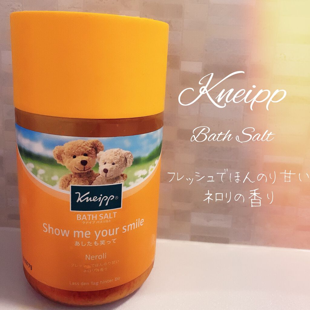 クナイプバスソルトネロリの香りクナイプの入浴剤を使う時は自分へのご褒美やお見舞い⁈の時が多い😙「あしたも笑って」の言葉に惹かれて購入。優しく甘い柑橘系🍊&フローラル系の香りで癒されました〜🥰どこか懐かしい感じがする優しく甘い香りで万人受けする...