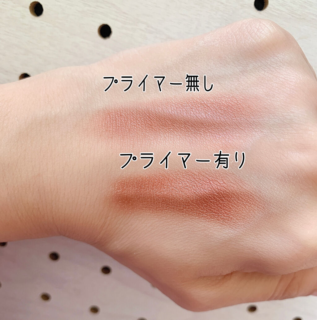 プライマー自体がヨレにくい。 適当にポンポン付けて、適当にサッとなじませるだけ。 プライマー自体に、ハッキリ色が付いている。 好みの色系統に、アイシャドウを高発色させることができる。 コーラル系アイシャドウに01をピンク系アイシャドウに02を合わせることが多い。