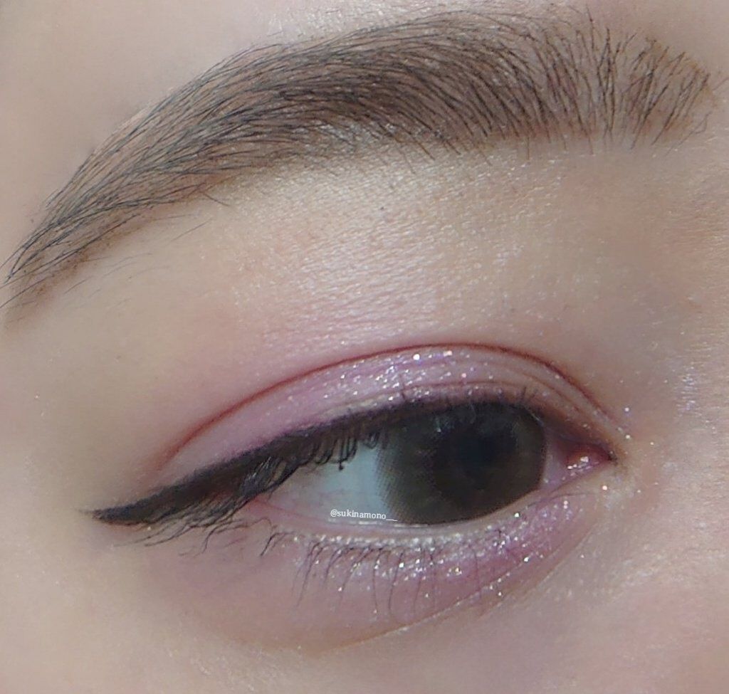 お値段は一つ300円。破格ですね。 色は06のプラネットシャドウと03のエメラルドティアーズを購入しました。 06のプラネットシャドウは濃い青色をしたグリッターになっています。手に塗ってみると青ラメとスパンコールがぎっしり入っていてまさに宇宙という感じがしました。 こちらのグリッター思ったよりべったりくっつくことはなく、ほんの少ししかつかないので涙袋など細かいところに塗るのにちょうど良いです。