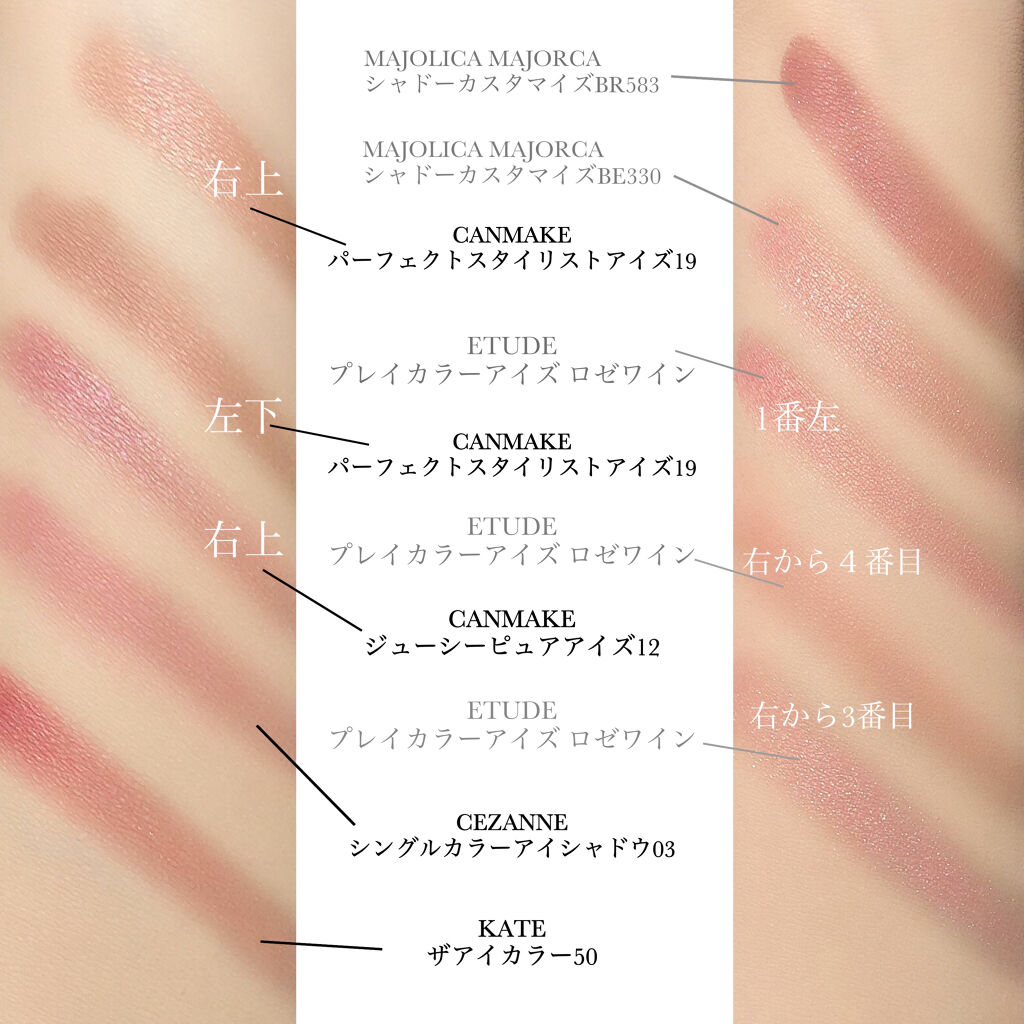 プチプラのキラキラ単色シャドウ2色で深みの中に可愛さもあるアイメイクに♡ MAJOLICA MAJORCA シャドーカスタマイズ キラキラと柔らかなふんわりピンクカラー。 ちふれ シングルカラー アイシャドウ 偏光パールに輝く深みのあるピンクブラウン。