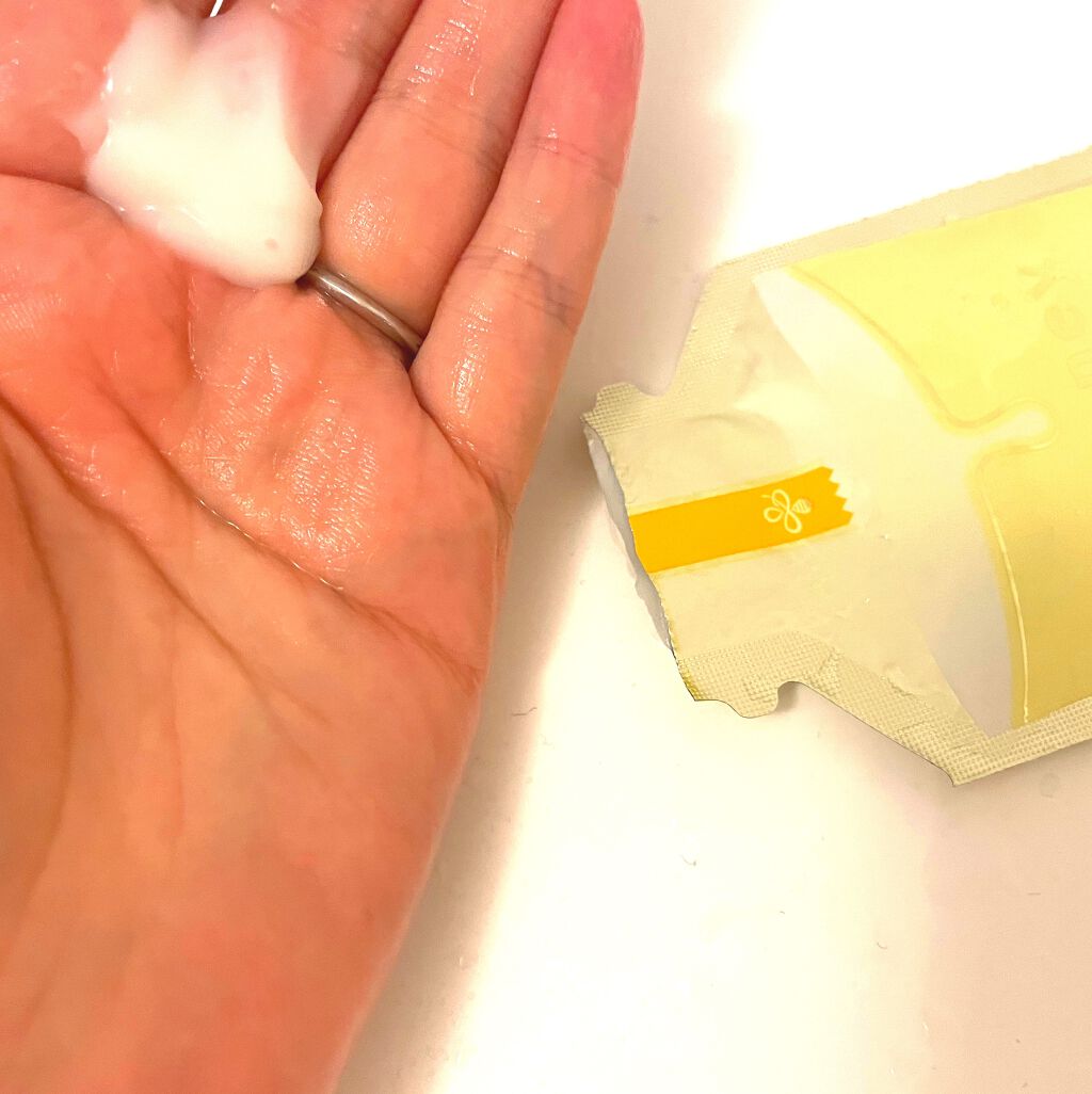 | ジェルのようなみずみずしいテクスチャーのシャンプーで、髪に「塗り広げて」から泡立てて使います。 | 詳細を見る | ||
